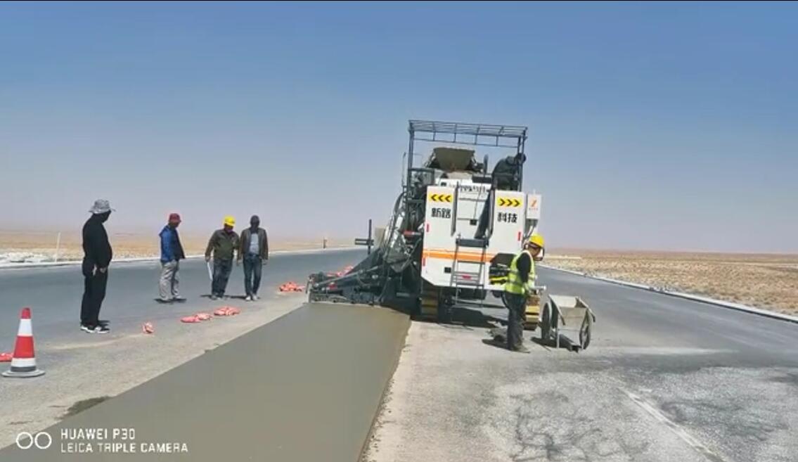 NC1300混凝土滑模攤鋪機(jī)在甘肅敦煌做的2米寬路肩