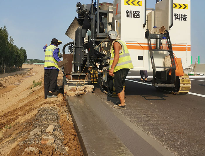 NC1300路緣石滑模機(jī)-山西晉城G207國道防撞護(hù)欄滑模攤鋪工程